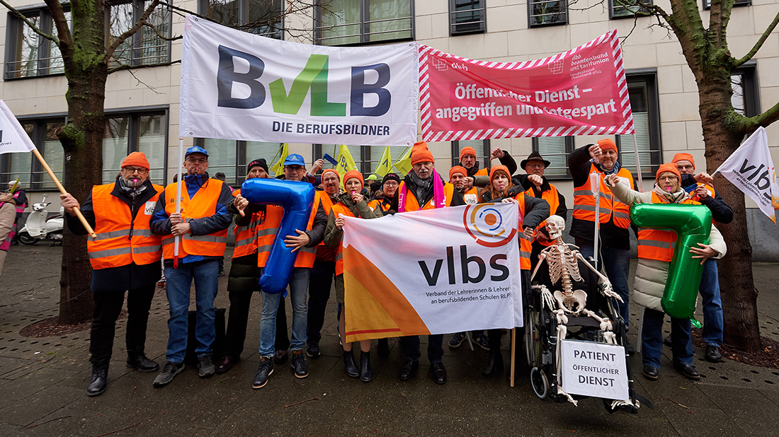 Am 14. Januar 2026 hat der VLW gemeinsam mit weiteren Bildungsverbänden und der Deutschen Polizeigewerkschaft (DPolG) im Rahmen einer vom Dachverband dbb Rheinland-Pfalz organisierten Staffelmahnwache vor dem Ministerium der Finanzen ein deutliches Zeichen für bessere Arbeitsbedingungen und ein wertschätzendes Miteinander im öffentlichen Dienst gesetzt. Die Aktion machte eindrucksvoll sichtbar, wie angespannt die Situation im öffentlichen Dienst ist.